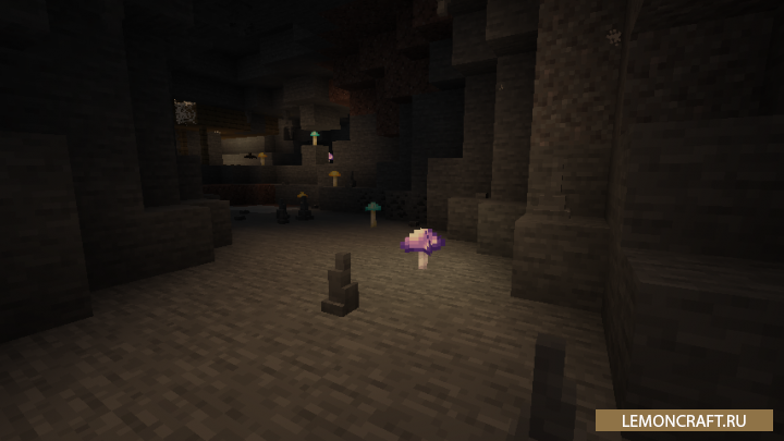 Мод на улучшенные подземелья Extended Caves внесет изменения в структуру подземелий, сделает их немного больше, а так же добавит небольшие заброшенные домики. Но самое интересное нововведение, это светящиеся грибы. Из данных грибов вы сможете создать еду, которая будет давать удивительный эффект для игрока. Так же в новых подземельях вы сможете встретить сталактиты, правда попадаются они очень редко.