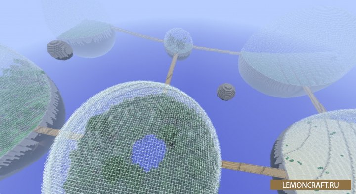 Мод на мир из шаров Biospheres добавляет в игру новую генерацию мира в виде стеклянных шаров висящих в пустоте. Шары представляют собой биосферы в каждой из которых свой биом. Для выживания и развития вашего персонажа вам нужно путешествовать по данным сферам. Кроме данных сфер есть еще сферы содержащие ресурсы, которые можно добывать. В конфиг файле вы можете произвести точные настройки данного мира, размер сфер, расстояние между ними и другое.