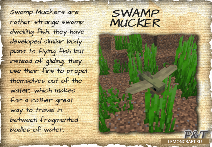 Мод на прикольных мобов Fins and Tails разнообразит игру различными интересными мобами, среди которых можно будет встретить и обычных рыбок и странных крабов. В мод уже добавлено более 30 новых существ и по заверению автором мода это еще не конец.